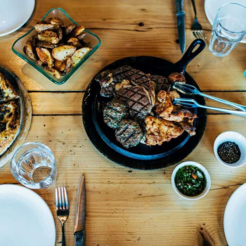 על השולחנות מחבתות ברזל לוהטות שעליהן מונחים בשרים עסיסיים אנינים לחיך והכול כמובן מוגש בשפע רב ובחיוך.
